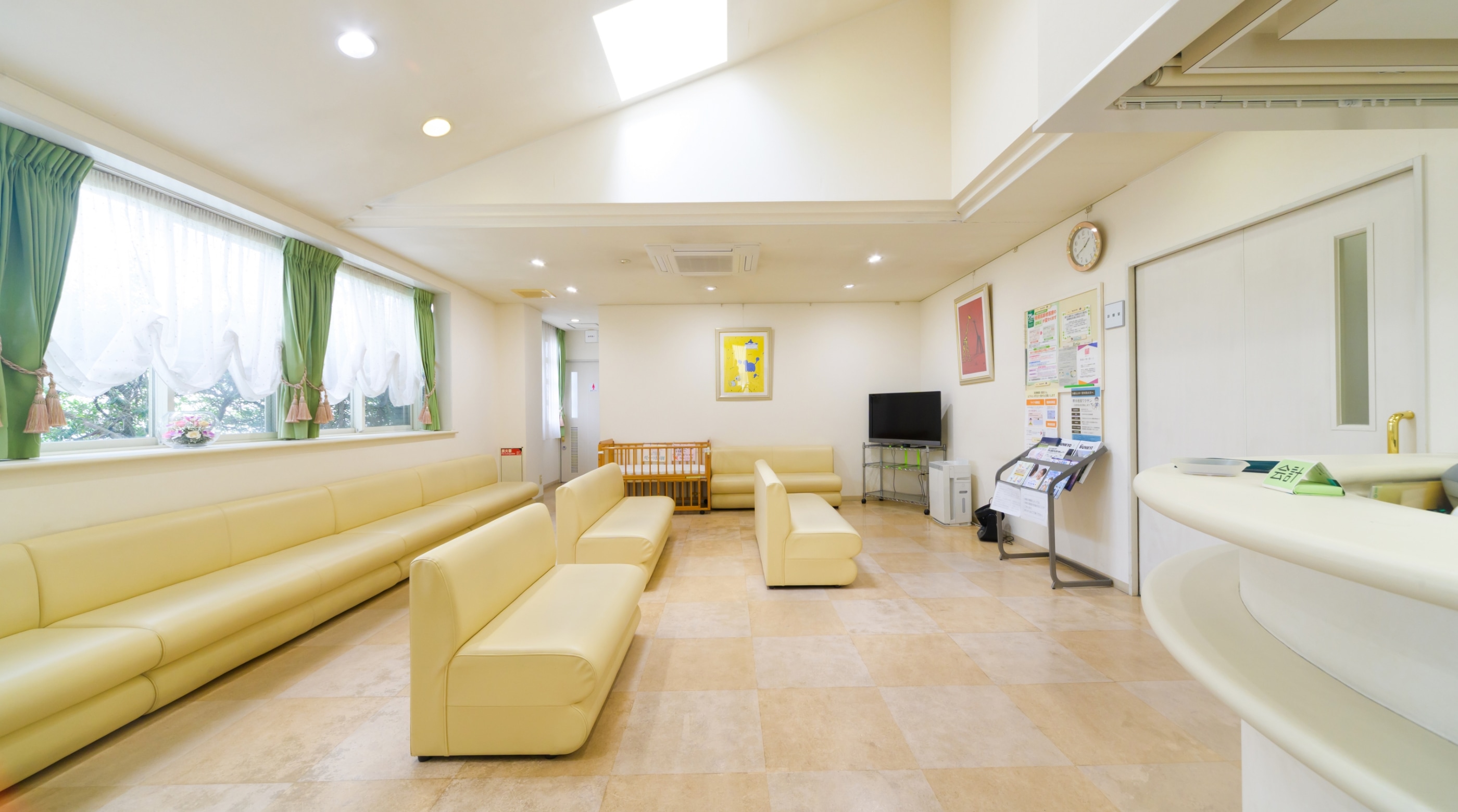 また、車椅子やベビーカーでも移動しやすい院内設計で、乳児用ベッドも完備しています。